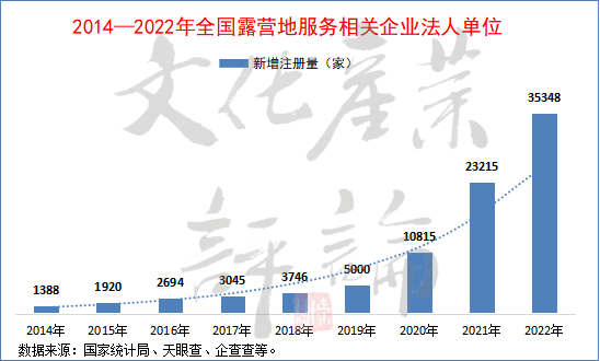 可查数据显示,截至目前,全国露营地服务相关企业已突破10万家。其中,2020年注册量达1.07万家,2021年这一数字飙升至2.3万家。着行业的快速发展与壮大,2022年注册量更是高达3.54万家。仅2023年一季度,又有1.31万家露营相关企业注册诞生。据预计,到2023年底,这一数字将进一步增长至约15万家左右。