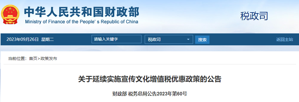 关于延续实施宣传文化增值税优惠政策的公告